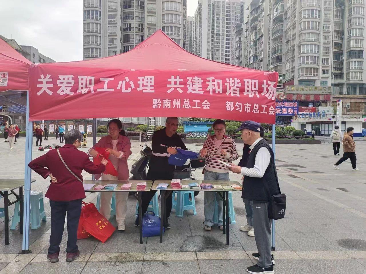 近日,贵州省黔南州都匀市总工会在都匀市人民广场开展主题为“关爱劳动者心理健康”2025年《中华人民共和国职业病防治法》宣传周活动。活动现场,市总工会工作人员向现场新就业形态劳动者及过往职工群众发放《中华人民共和国职业病防治法》《中华人民共和国妇女权益保障法》《中华人民共和国反家庭暴力法》等宣传资料500余份,针对职工群众关心的粉尘危害预防、工伤保险等问题,通过现场讲解、咨询等方式进行解答,进一步普及职业病防治知识,强化劳动者自身健康第一责任人意识。