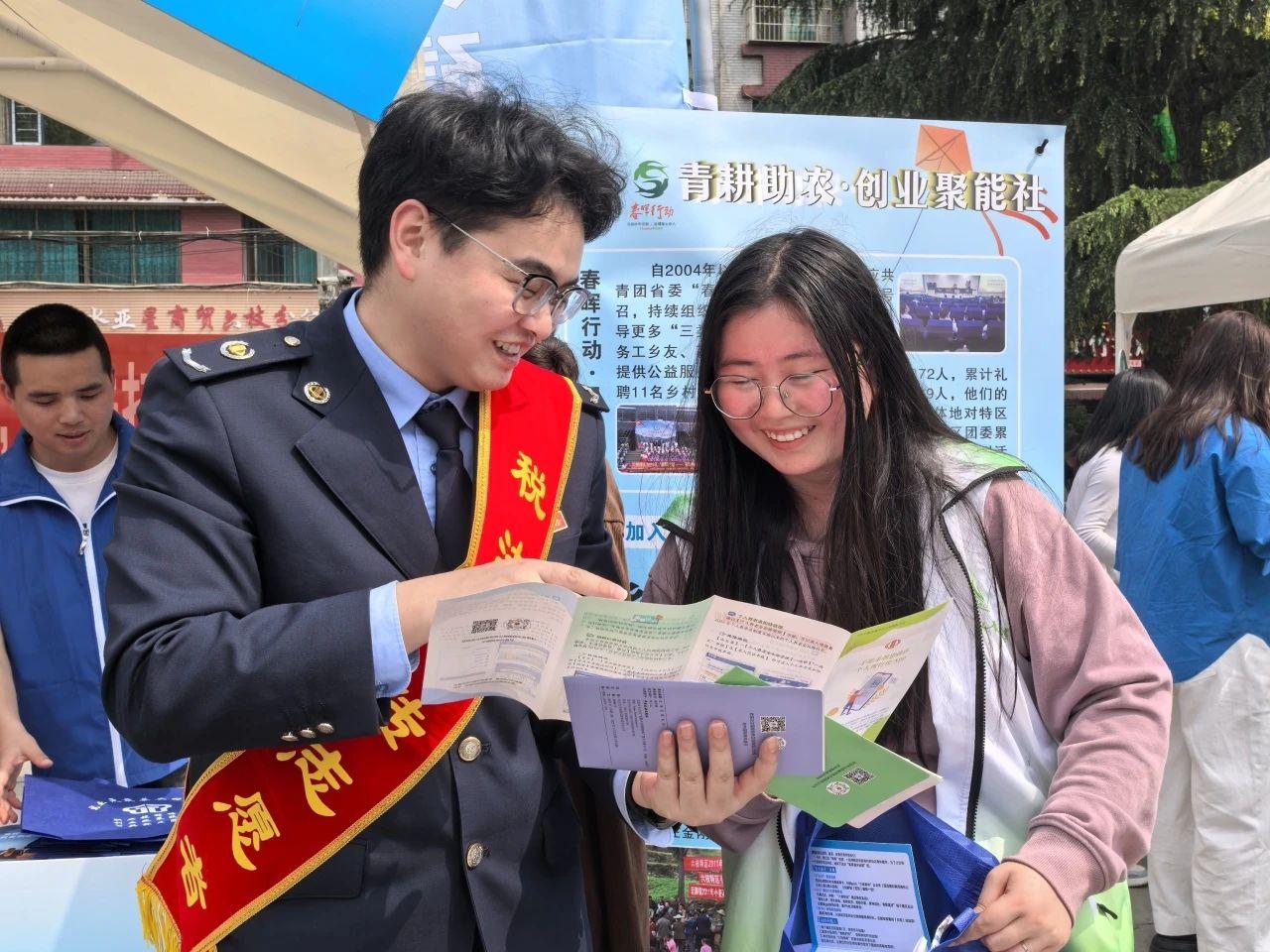 在活动现场,税法宣传志愿者穿梭于“青听心声·邻里会客厅”“青护家园·环保先锋营”“青耕助农·创业聚能社”等展示区,用通俗易懂的语言为“摆摊者”“赶集者”讲解个人所得税专项附加扣除、重点群体创业就业税收优惠、社保费缴纳流程等与群众生活、经营息息相关的热点税收知识。此次活动还设置了税法咨询台,为前来咨询的商户、青年提供“一对一”答疑服务,并发放印有国家税务总局微信公众号二维码的宣传折页,方便青年群体扫码获取更多税收知识。