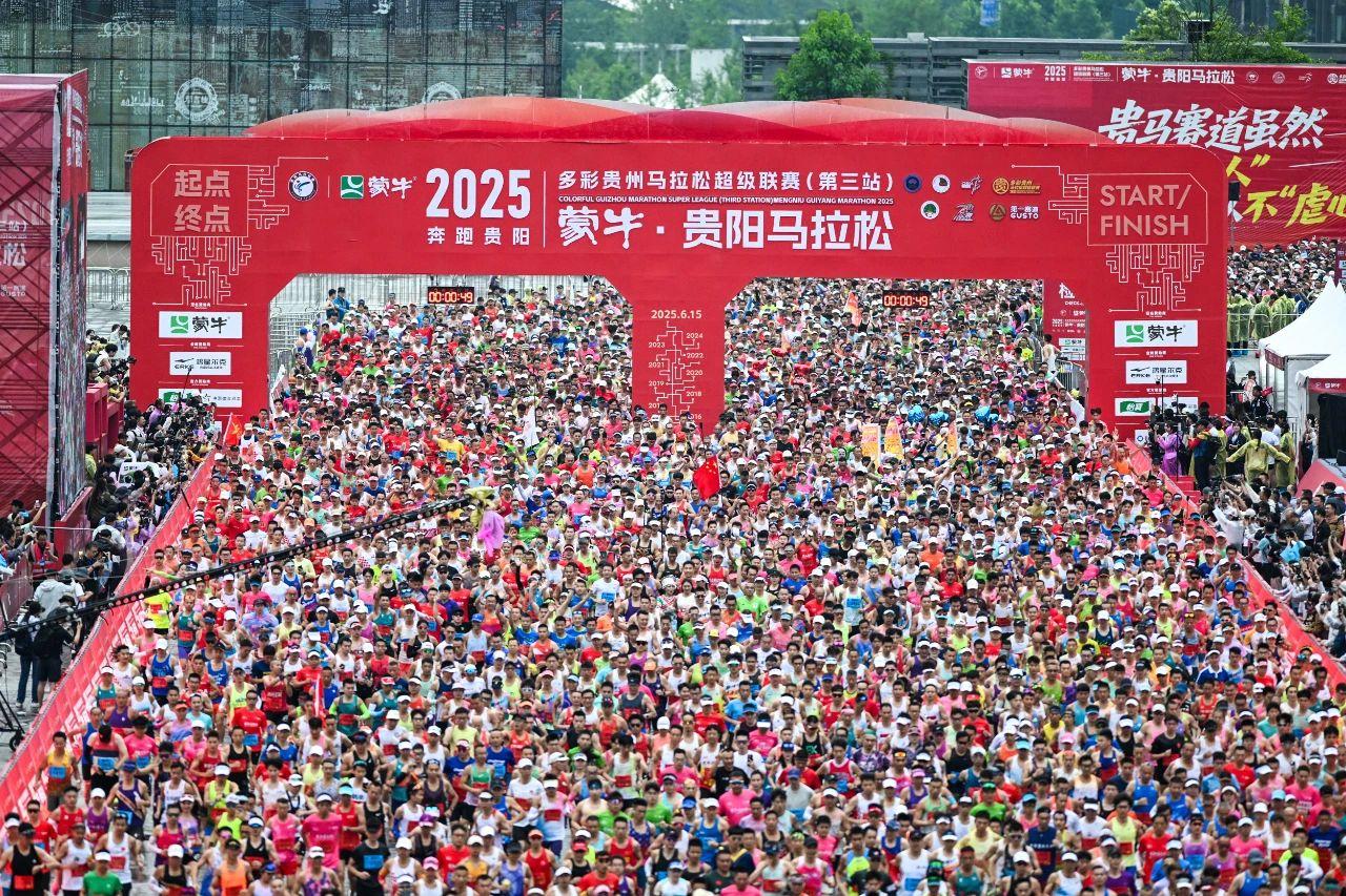 6月15日,2025多彩贵州马拉松超级联赛(第三站)蒙牛·贵阳马拉松在贵州省贵阳市国际会展中心北广场激情开跑。来自新加坡、肯尼亚、英国、澳大利亚等26个国家和地区,全国34个省、自治区、直辖市以及港澳台地区的3.5万名跑者齐聚林城,共同感受“爽爽贵阳”的独特魅力。