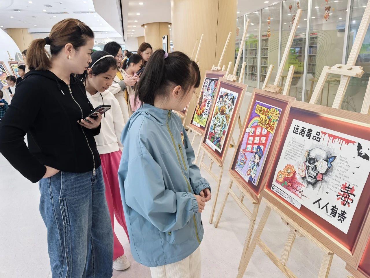 图书馆内,百余幅来自观山湖区各中小学生的优秀禁毒主题书画作品精彩亮相,稚嫩的画笔与真诚的色彩勾勒出孩子们对无毒未来的坚定向往,向社会传递纯净而有力的禁毒宣言。