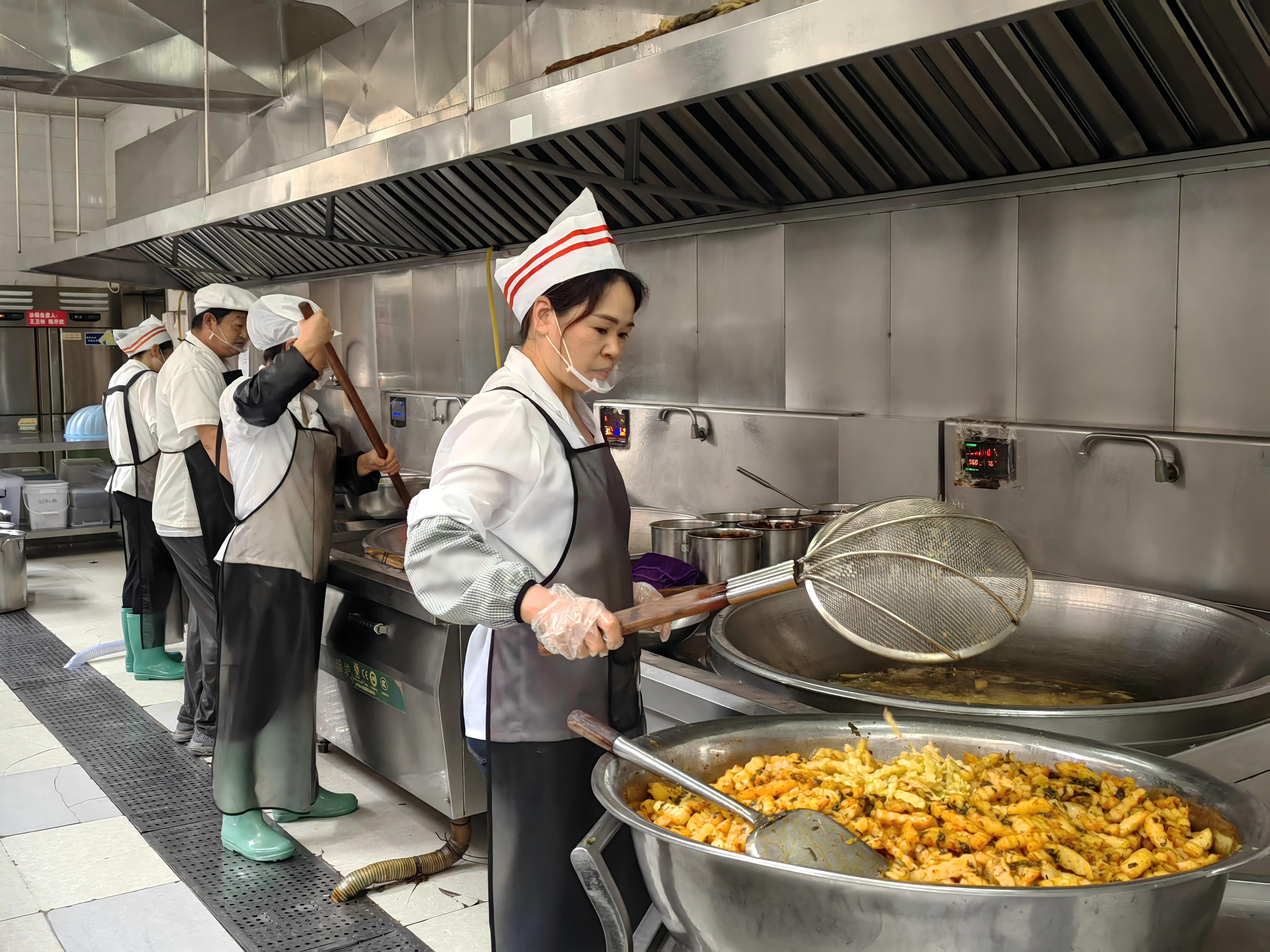 为提升学校食堂厨师专业水平,县教育局打造“指尖上的课堂”,从抖音等网络平台筛选优质烹饪教程,分享给食堂从业人员,并定期组织线上交流研讨,确保厨师技能有效提升。同时,从全县在职在编教师中遴选1名具有健康管理师资格证的教师,调入教育局负责学校的带量食谱制定工作,根据学生成长营养需求,精心调配每一餐。