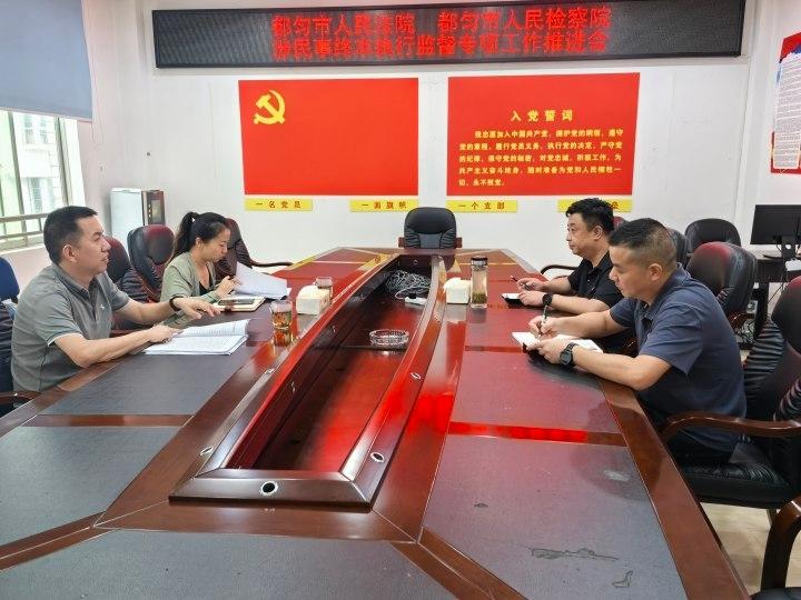 近日,贵州省黔南州都匀市人民检察院、都匀市人民法院召开涉民事终结本次执行监督专项工作推进会。双方就加强民事终本案件执行监督、提升执行质效等问题展开深入交流,旨在破解民事执行难题,切实维护当事人合法权益。