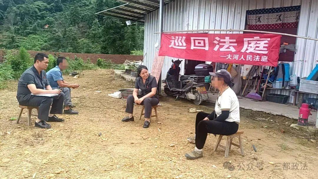 近日,受持续强降雨影响,贵州省黔南州三都县多地遭遇洪涝灾害,道路损毁,群众出行受阻,多起民事纠纷当事人也因灾无法到庭,维权陷入困境。因此,三都县人民法院大河人民法庭迅速启动“汛情司法保障机制”,开展巡回审判,将法庭搬到群众家门口,用实际行动诠释司法为民。