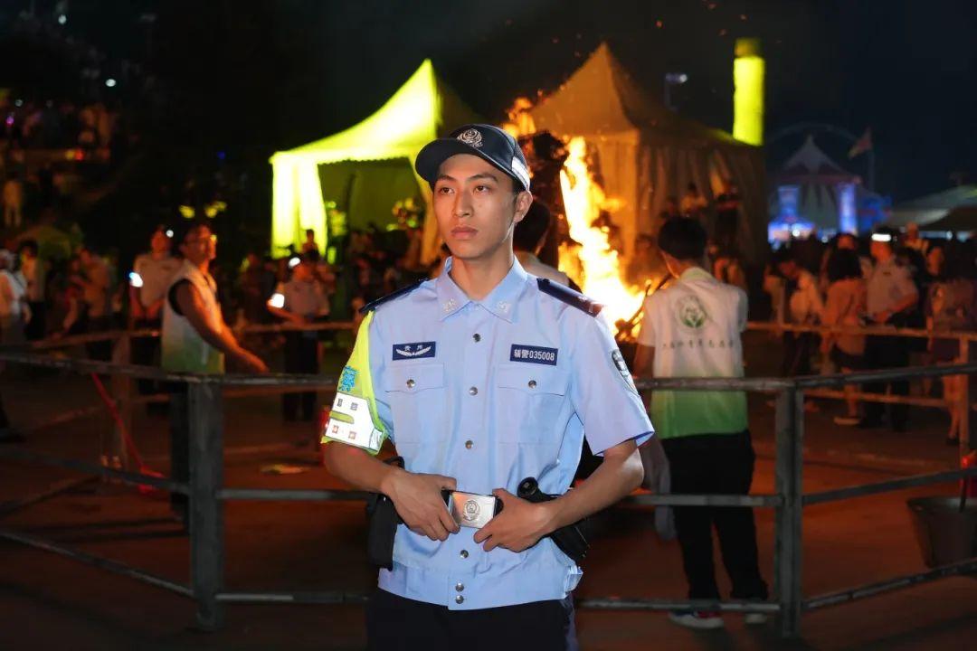 晚上10时,九堆环形篝火被同时点燃,数千支火把刹那间将夜空映照得通红炽烈。人潮随着彝族达体舞的奔放节奏热情涌动、跳跃。此刻,彝族民警王伟旭正带领巡逻小组在人流中穿梭,目光锐利如鹰,不放过任何一个安全死角。“篝火舞动时,必须保证游客处于火星喷射半径之外,我们民警组成的这道‘隔离带’,就是守护生命的安全线!”篝火管控组组长崔恒的话语掷地有声。