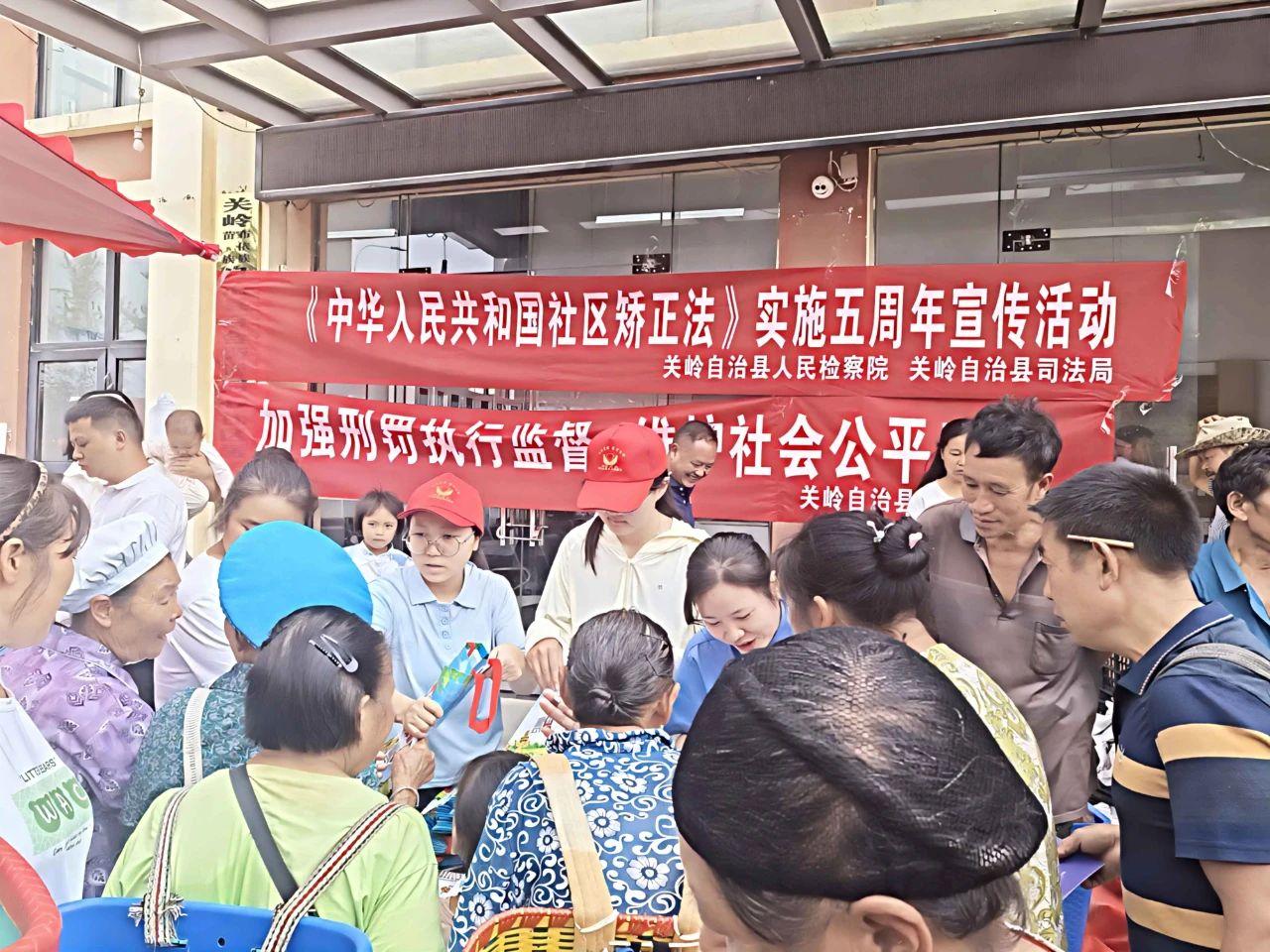 线下,精准普法点燃“烟火气”。近日,关岭县检察院联合县司法局利用赶集日人员聚集的契机深入同心社区开展刑罚执行监督暨《中华人民共和国社区矫正法》实施五周年集中宣传活动。活动现场,通过设置咨询台、发放宣传资料、现场讲解等方式,向过往群众介绍、宣传社区矫正工作的主要内容和意义以及检察机关在社区矫正监督中的职责和作用,使广大群众对社区矫正工作中的“矫正谁”“谁来矫”“如何矫”有了深入的了解。不少群众表示,以前对社区矫正工作了解甚少,通过这次宣传活动,才知道原来还有这样一项制度。“原来以为监外执行就是不用坐牢,就没事了,原来还要接受学习教育啊!”活动现场一位群众说道。