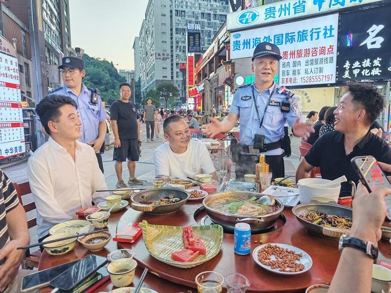 “未成年入住要做好登记台账”“不采购、不使用‘三无’产品”“食品安全是重中之重,不得马虎”。针对避暑季可能滋扰游客体验的乱象,观山湖公安重拳出击,联合相关部门开展“护游”行动,全面净化旅游环境。对酒店、民宿、餐饮等重点场所开展“拉网式”排查,确保隐患动态清零;对酒后滋事、噪音扰民等夏季高发警情保持“零容忍”高压态势,快查快处,全力守护“黔中会客厅”的宁静与秩序,为游客营造清朗舒心的避暑空间。