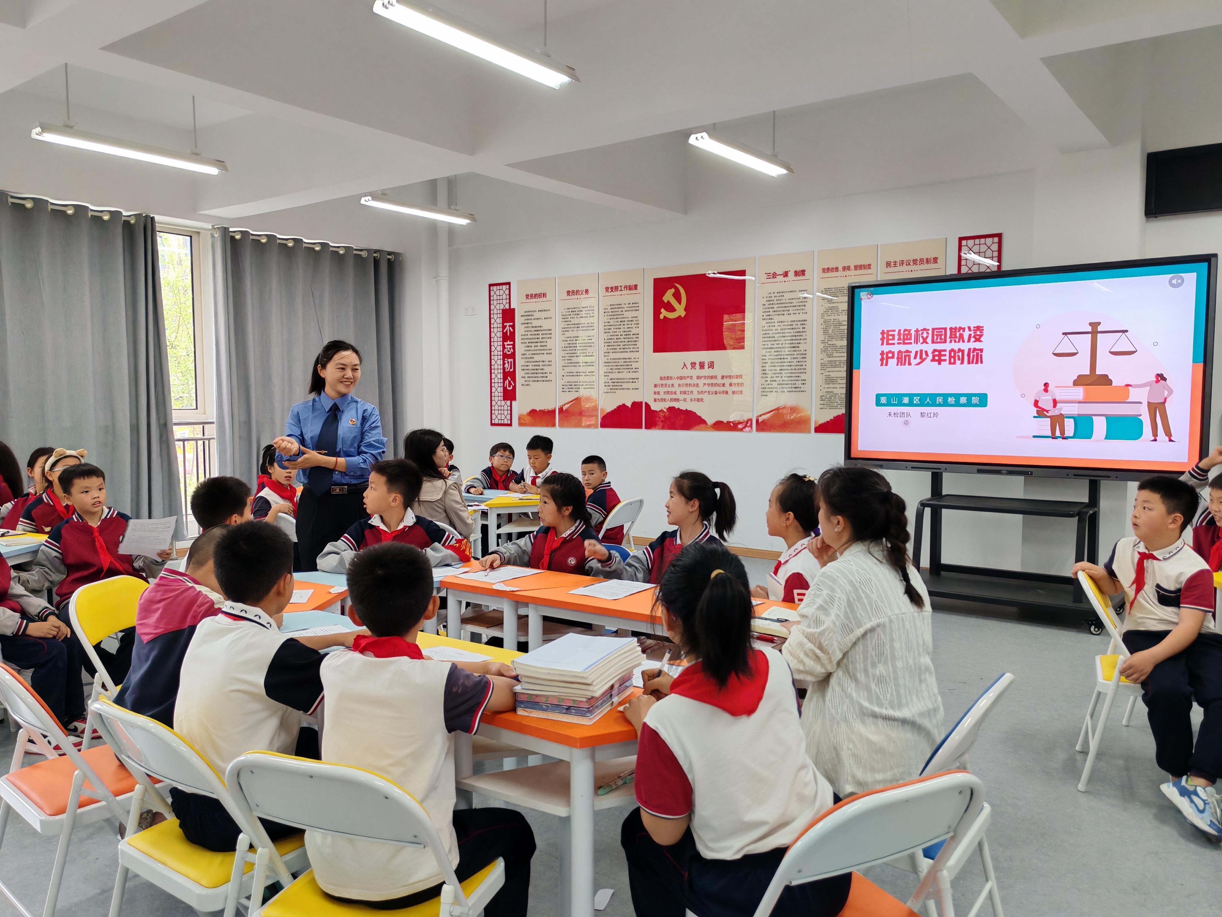 该院充分发挥检察智慧与优势,与教育行政主管部门、学校、社区等多部门构建“护未”协作网络。其中,与宇虹社区豌豆荚儿童之家拟定“检察蓝+豌豆绿,开展托起少年五彩梦”的检社合作,制定了共同开启暑期社会实践、暑期专项行动方案,共同创办文艺会演、法治小小观察员、模拟法庭等系列活动。检察官走进社区,向“小小观察员”讲解法律知识、明确履职要求并发放聘书,调动了学生与家长参与热情,从环境营造到内心认同,层层提升未成年人自我保护意识。