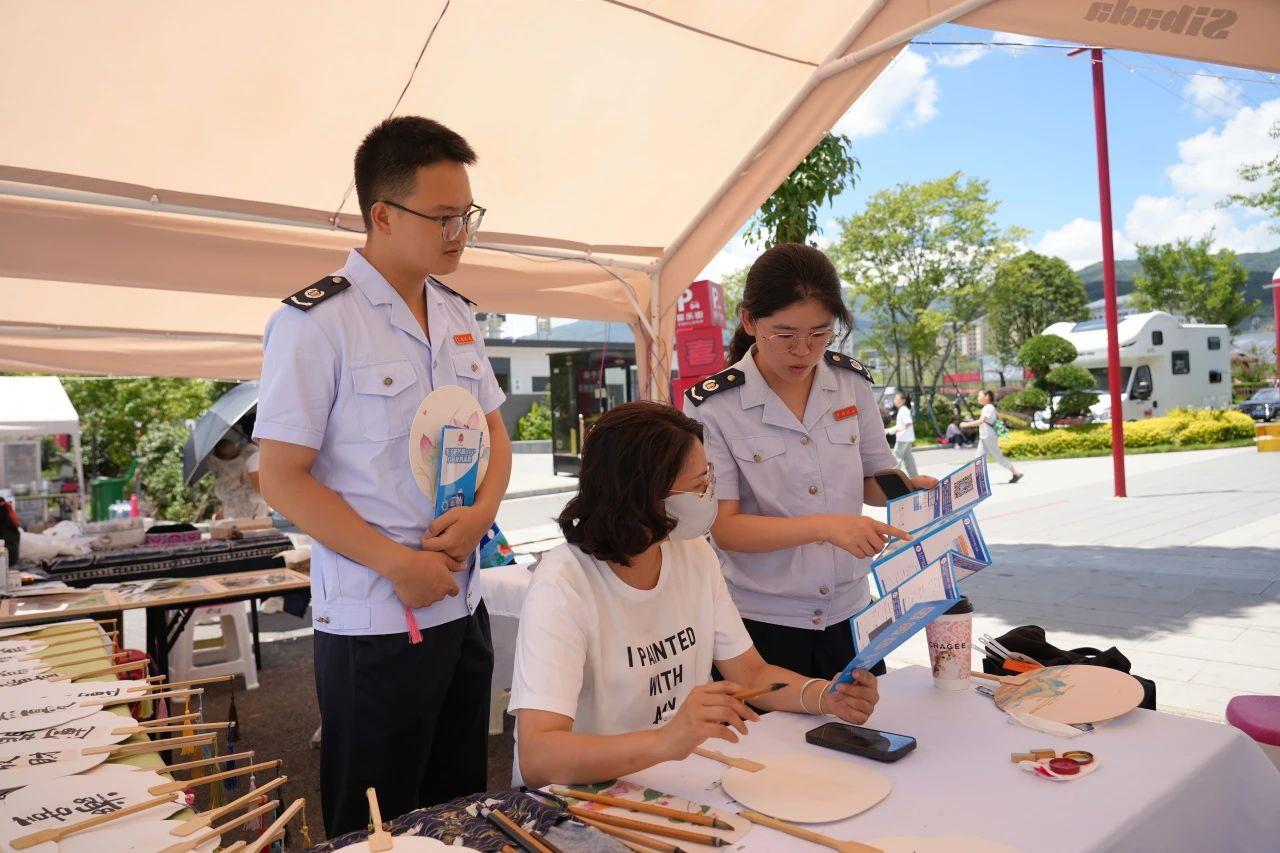 “我一直不清楚电子发票怎么开,今天税务干部拿着流程图一步步、手把手教我,还讲解了相关税费优惠政策,太实用了!”盘州秦氏非遗面雕摊主秦女士满意地说。