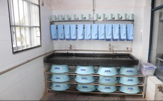 同时,监舍内动态更新的“定置管理牌”“卫生分工图”,清晰标注人员信息与责任区域,明确“谁负责、管什么、怎么管”。小圆凳编号朝外整齐置于学习桌下,防爆饮水杯按编号定位于杯垫,学习桌各层书籍有序摆放——处处细节彰显监舍管理的“精准化”标准,营造出“规范有序、文明整洁”的改造氛围。不仅是储物空间与监舍,洗漱区域、公共活动空间等也纳入标准化管理范畴,实现公共区域标准化管理无死角。