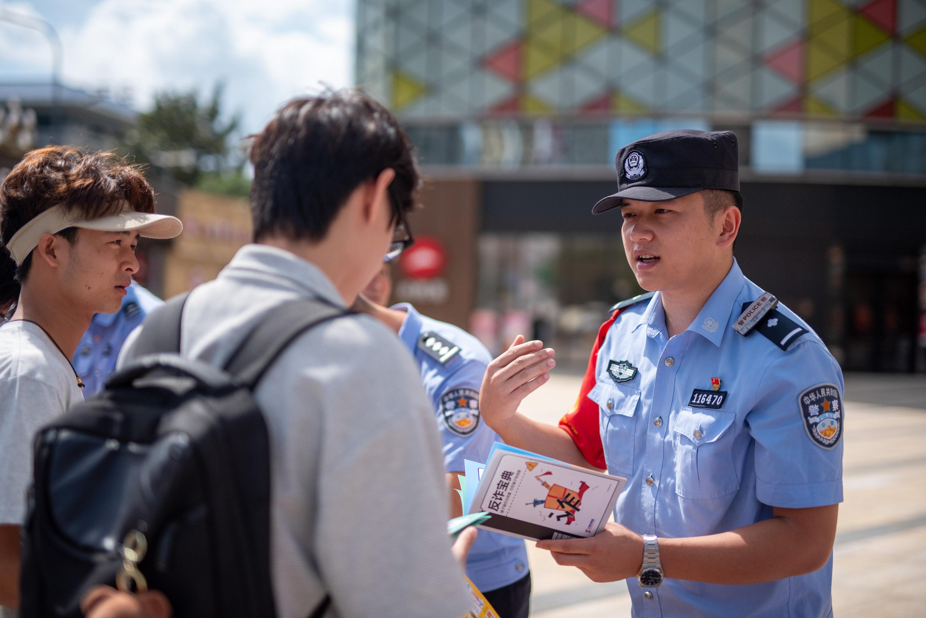 图为都匀东站派出所民警向旅客开展反诈宣传。