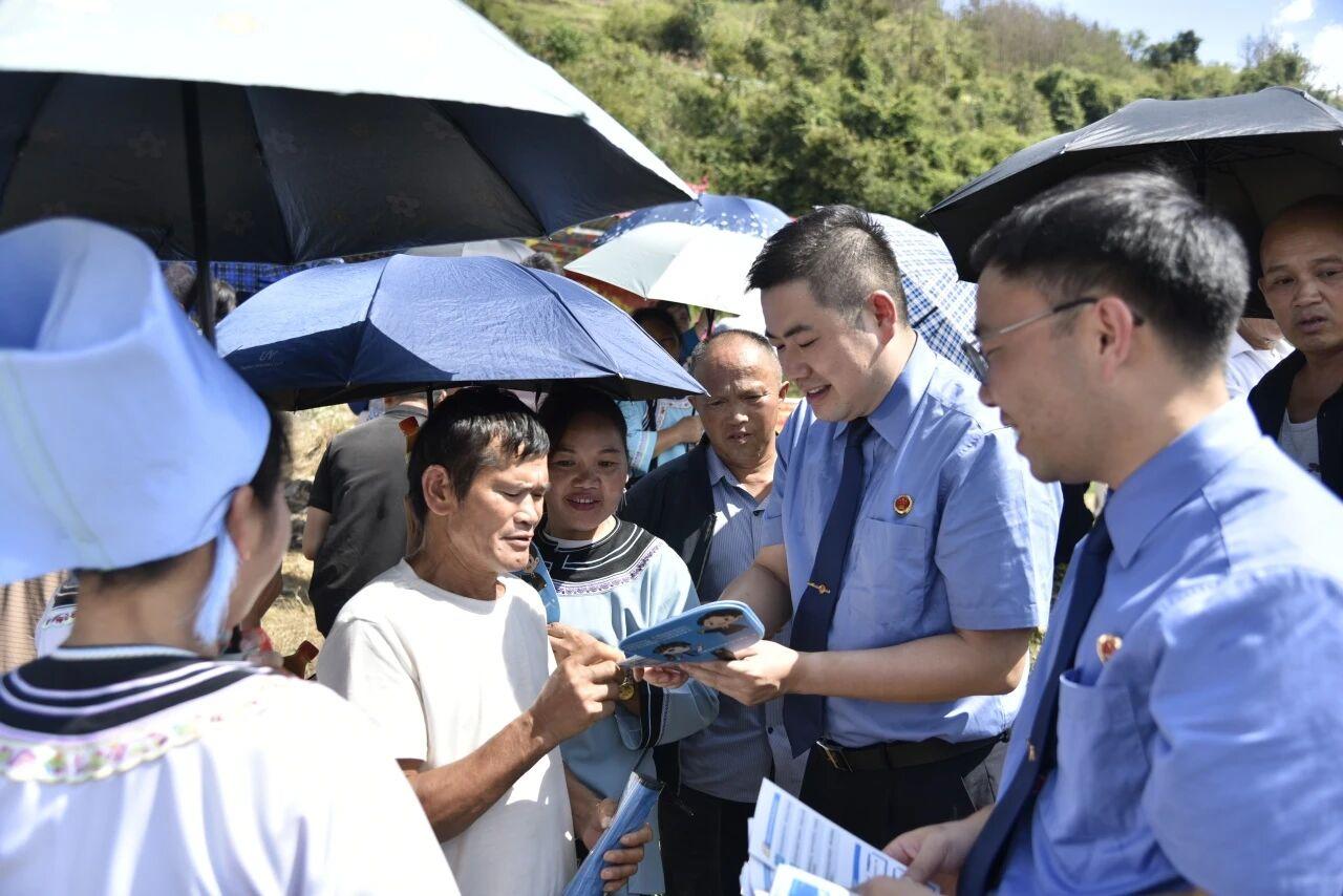 “借端(水语:过端节)要祭祖敬贤,过日子要学法守法。”双语检察干警们一边用水语向围观群众问好,一边用普通话向过往群众开展“分众化”普法宣传。针对带孩子的家长,干警重点讲解《中华人民共和国未成年人保护法》《中华人民共和国家庭教育促进法》和“六大保护”知识;面对老年群体,侧重普及养老诈骗防范和赡养义务相关规定;对于务工者关注的就业问题,则重点拆解“高薪诈骗”套路,结合支持起诉职能进行宣传,让群众懂得如何通过法律途径维护自身合法权益。据统计,活动当天共发放各类宣传资料300余份,接受法律咨询10余人次。