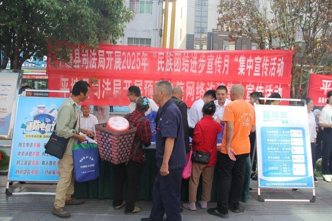 2025年10月11日,贵州省黔南州平塘县以打击整治行动退赃大会暨集中宣传活动为契机,县司法局组织普法志愿者、公职律师、基层法律服务工作者等力量,同步开展预防电信网络诈骗法治宣传活动,进一步提升群众防骗意识和识骗能力。