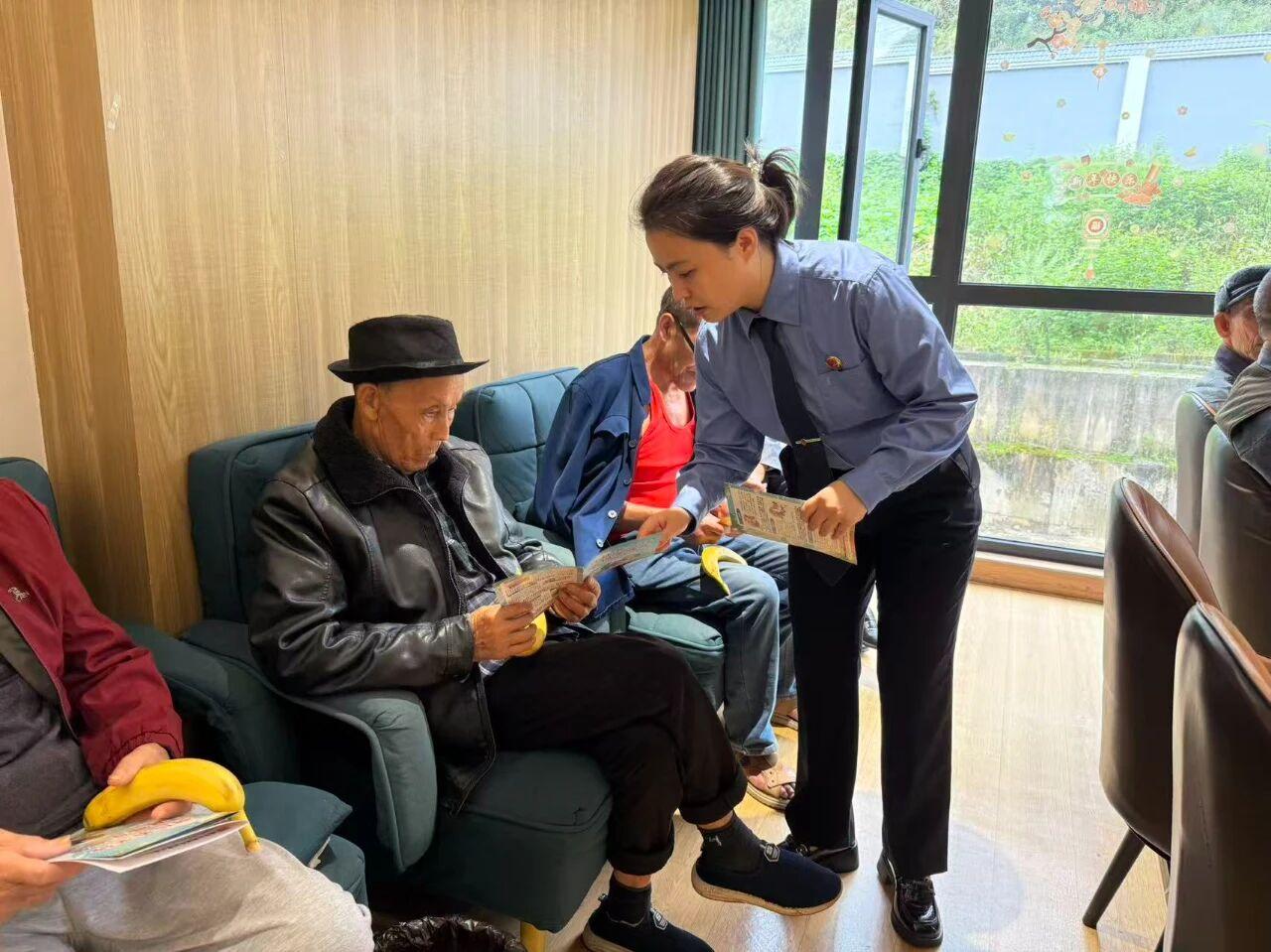 随后,县民政局工作人员围绕“养老服务机构监管政策”“老年人权益救助渠道”等内容展开解读,检察干警同步补充道:“若发现养老机构存在违规运营、行政机关履职不到位等情况,可通过拨打12309检察服务热线反映,检察机关将通过行政检察监督,推动问题整改,保障大家的居住和服务安全。”让老人们不仅懂“防骗”,更知“维权”。