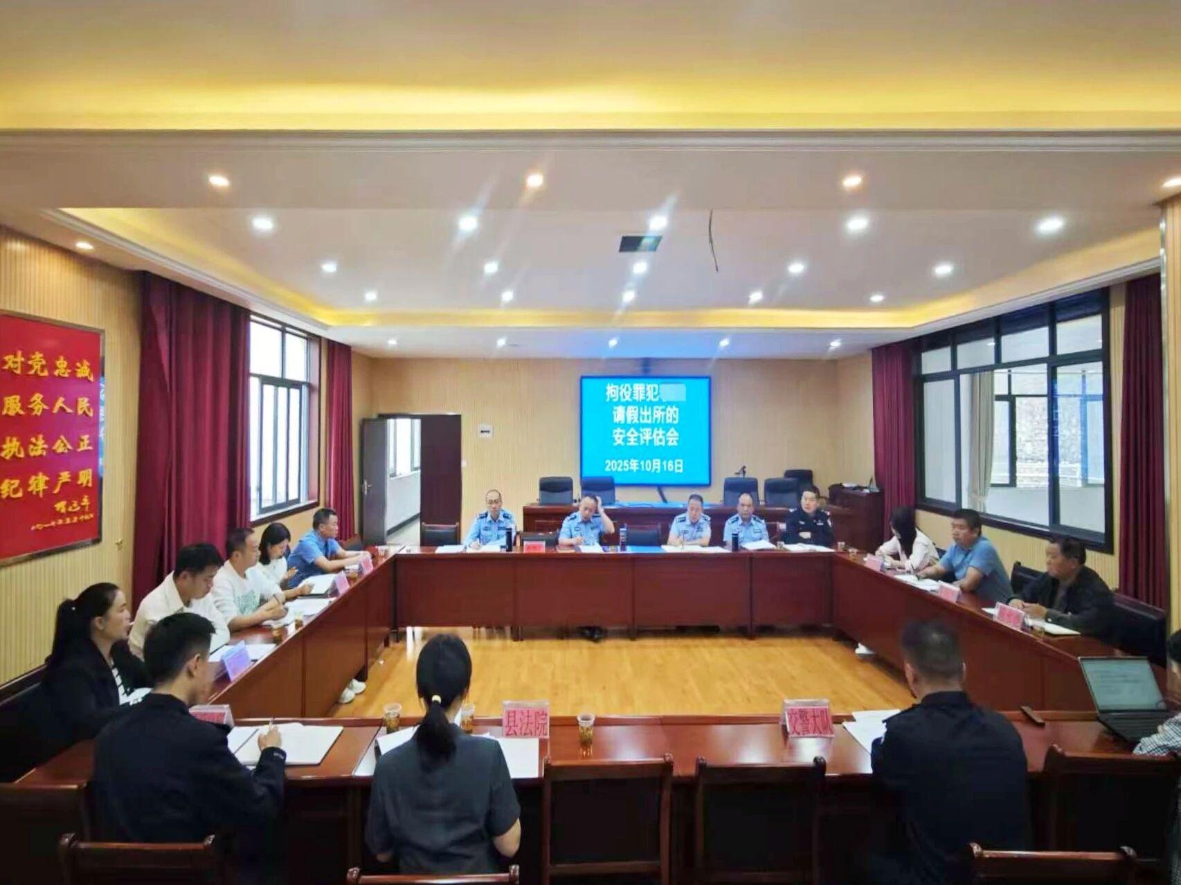 图为拘役罪犯李某请假出所安全评估会。