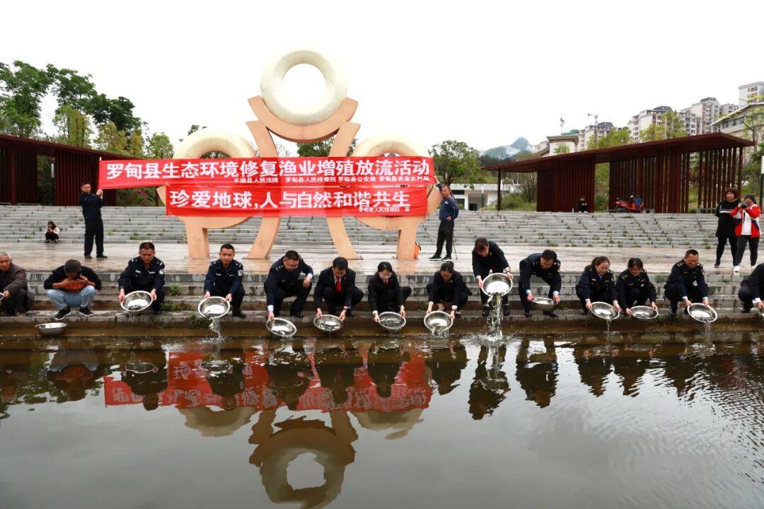 自2022年起,平塘县法院联合县检察院、公安局、农业农村局等部门多次开展增殖放流活动,累计投放草鱼、鲫鱼、鲤鱼、鲢鱼等鱼苗18万余尾,助力受损水域生态系统的补充性修复与物种平衡,实现惩罚犯罪、教育公众与生态恢复的有机统一。