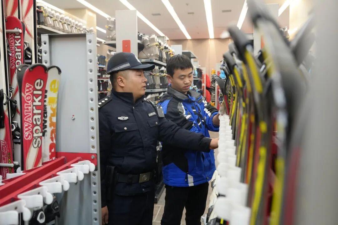 在滑雪场核心区域,民警们逐项核查造雪机、缆车、防护网等设施设备的运行状态,测试消防器材是否完好、安全标识是否清晰醒目。同时,另一组检查人员深入景区餐饮店铺和民宿客栈,开展食品安全与消防安全“双查双促”,从食材储存到消防通道,从燃气使用到应急照明,不留死角,不留隐患。