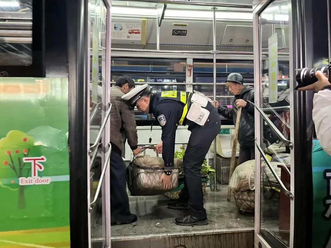 在每日运营前,民警与当班司机对乘客携带的货物摆放进行检查,并对乘客放置的蔬菜、农用工具等物品的摆放进行固定,防止行驶中倾倒或滑动,最大限度消除在运营过程中可能出现的安全隐患。
