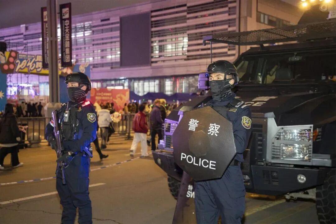 跨年夜的贵阳精彩纷呈,贵阳国际会展中心北广场的路边音乐会群星献唱,万人齐喊“新年好”倒数迎新春;观山湖公园音乐节上,说唱热潮搭配绚烂烟花点燃青春活力;天河潭电音派对嗨翻全场,璀璨烟花照亮喀斯特夜空;甲秀楼灯光秀映亮南明河,“快马上青云”的歌声穿透街巷,花果园双子塔无人机天幕秀划破跨年夜空。在这些热门活动现场,安保力量全程在岗,尤其在花果园双子塔6小时光影盛宴现场,民警穿梭在万人人潮中,耐心做好指引、解答咨询、提示安全,成为跨年夜里群众心中的“定心丸”。