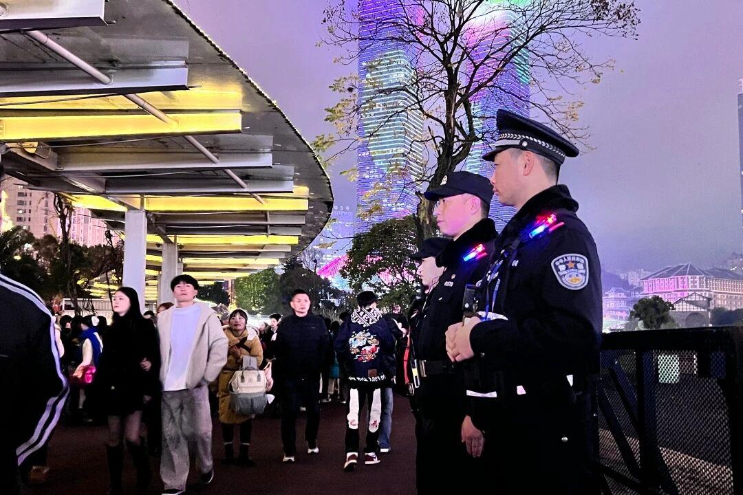 图为贵阳公安民警在跨年夜活动现场执勤。