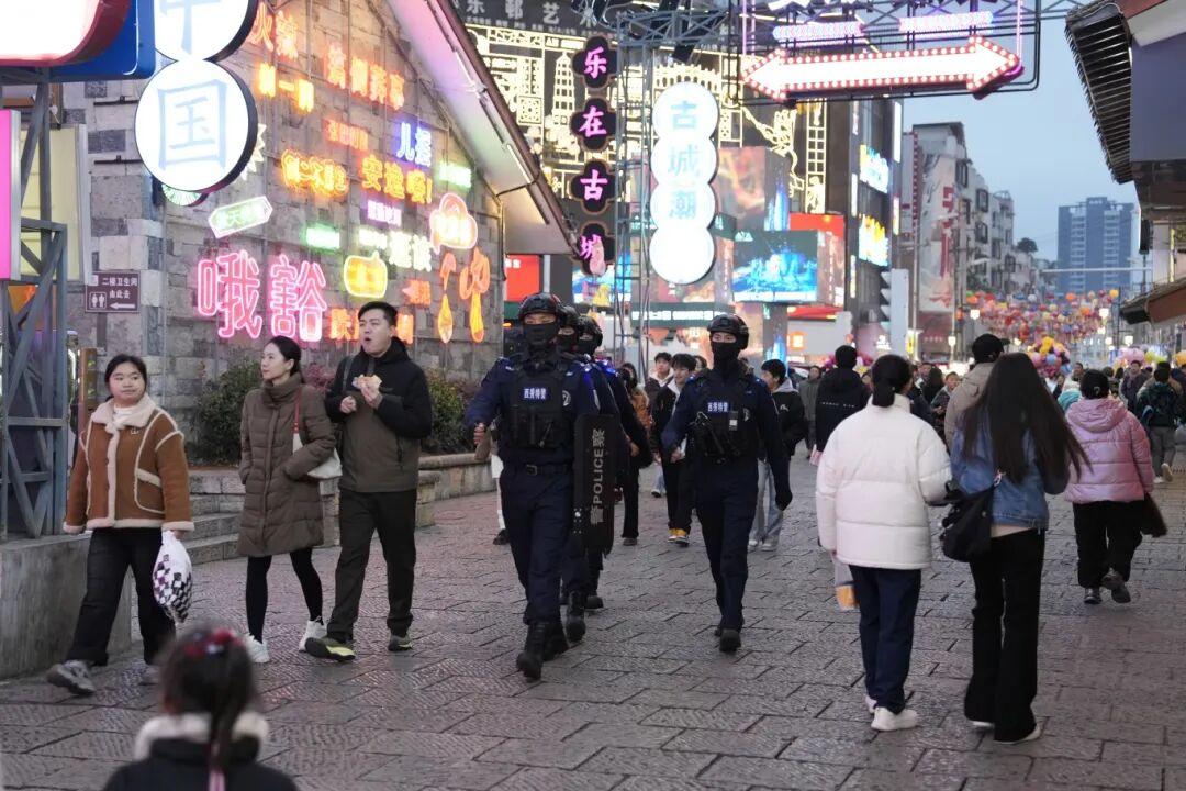 为确保元旦假期全省社会面安全稳定,贵州省公安机关严格落实公安武警联勤武装巡逻和快速反应机制,针对夜市、商圈等人员密集场所和机场、车站等重点部位开展社会治安巡逻防控,累计投入警力2.3万余人次,做到“见警察、见警灯、见警车”,有力维护了良好治安秩序。