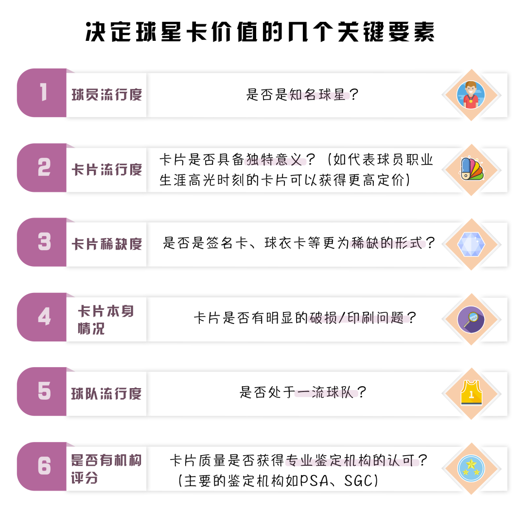 球星卡品类繁多,其发售价格也不尽相同,从几十块钱到上万元不等。影响球星卡价值的要素包括球员流行度、卡片流行度、卡片稀缺度、卡片本身情况、球队流行度、是否有评分机构等。