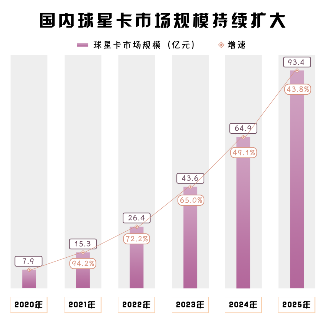 从艾瑞咨询发布的数据来看,2024年,中国球星卡行业市场规模将达到64.9亿元,相比2023年增长49.1%,预计在2025年其市场规模将突破90亿元。