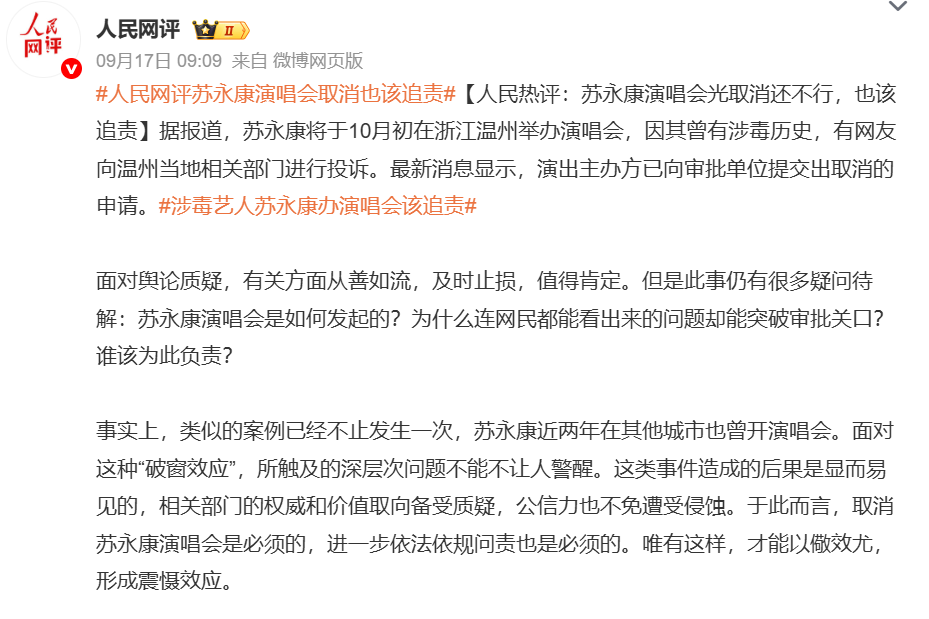 6.苏永康演唱会主办方申请取消,涉毒艺人不能复出是底线