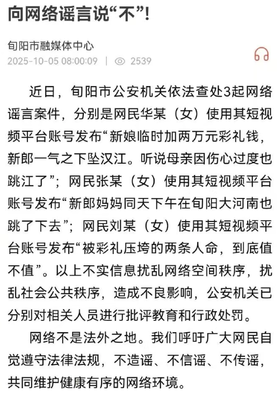(旬阳市融媒体中心发布对造谣者处置情况)