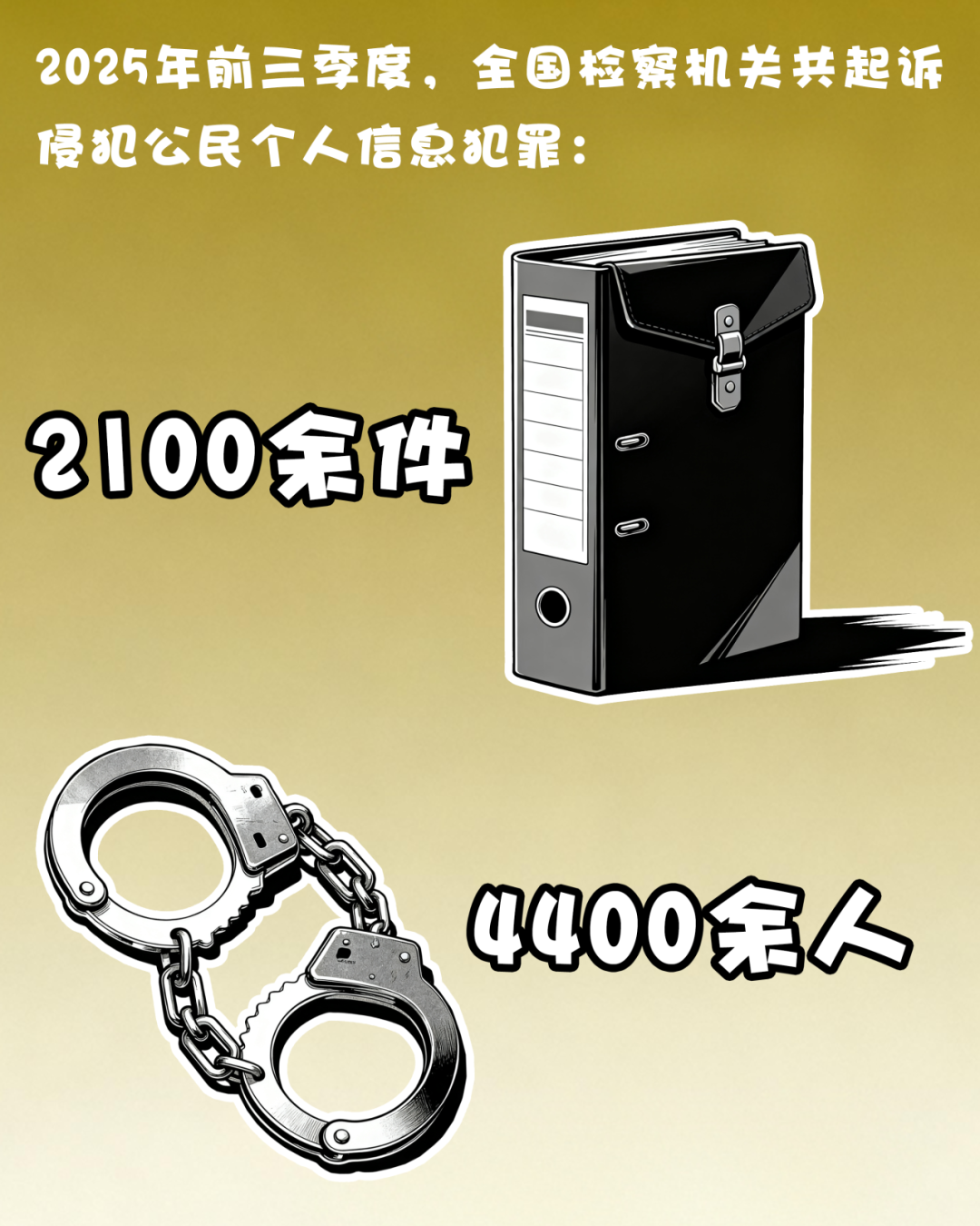 2024年,检察机关起诉利用网络实施的侵犯公民个人信息犯罪2458人;2025年前三季度,全国检察机关共起诉侵犯公民个人信息犯罪2100余件4400余人。