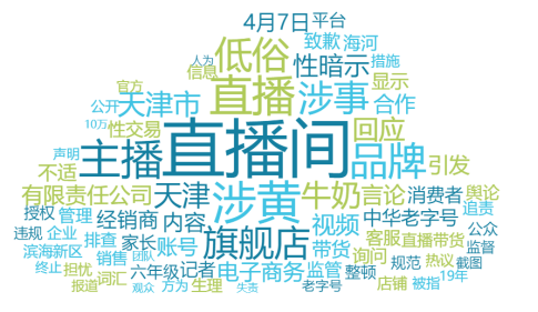 截至4月8日17时,全网相关信息1.9万余条。“#曝某牛奶直播间涉黄涉低俗#”“#市监回应海河牛奶直播被指涉黄#”“#直播涉黄牛奶品牌为中华老字号#”等微博话题阅读量累计超2.5亿,曾登上热搜榜第1位、第20位、第25位。“市监回应海河牛奶直播间被指涉黄”“海河乳品就直播间涉黄致歉”等核心话题均登上百度热搜总榜前列。