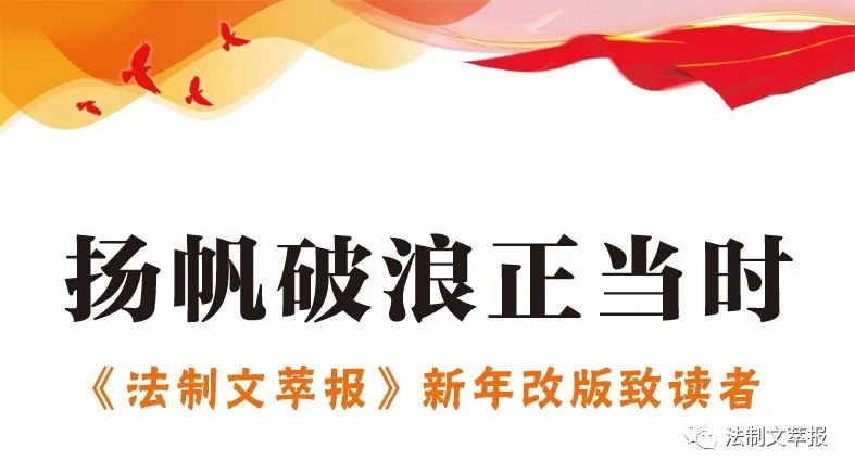 “百年机会真难遇,一线光阴更易流。”《法制文萃报》的改版和创新,是顺应新时代的召唤,更是凝心聚力的整装再出发。《法制文萃报》将抓住机遇、乘势而上,担当使命、扬帆破浪,与广大读者一道,书写新篇章、创造新辉煌!