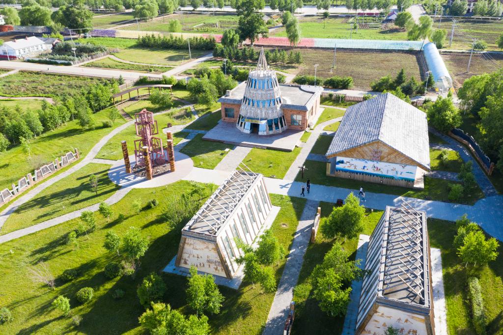 黑龙江饶河四排赫哲族风情园一角(无人机照片)。新华社记者 谢剑飞 摄