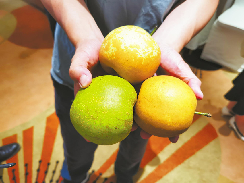 砂梨品鉴会上,不同合作社种出的砂梨同台PK。