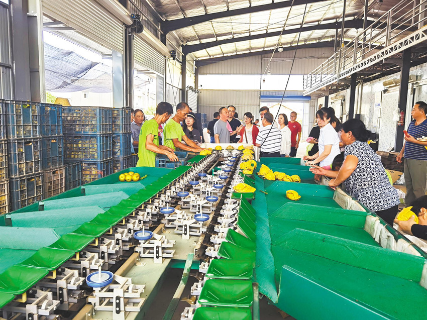 专家参观砂梨分拣、包装现场。