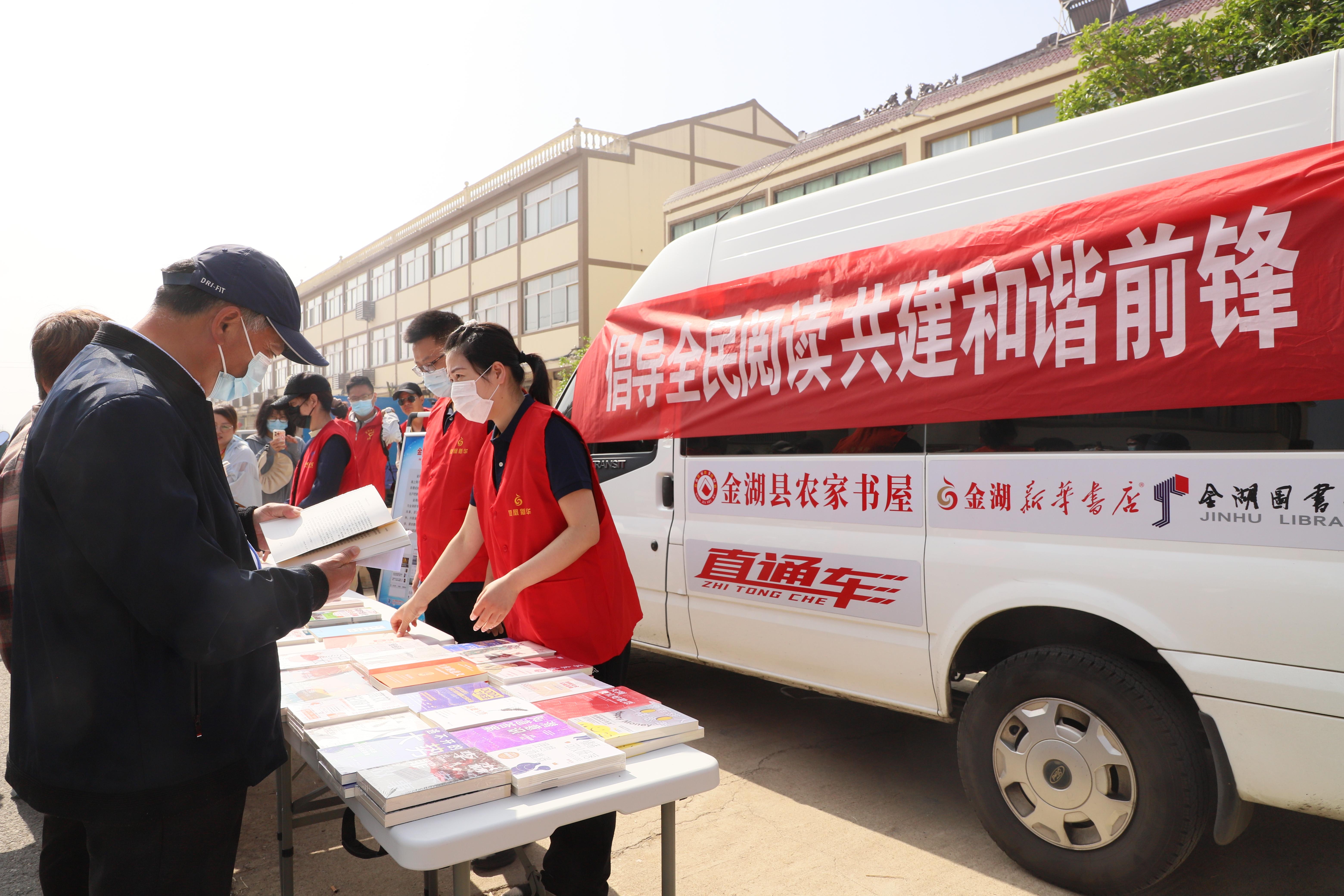 2022年7月26日,逢集期间,金湖县全民阅读志愿者将农家书屋“直通车”开进金湖县前锋镇,让图书“飞入寻常百姓家”。