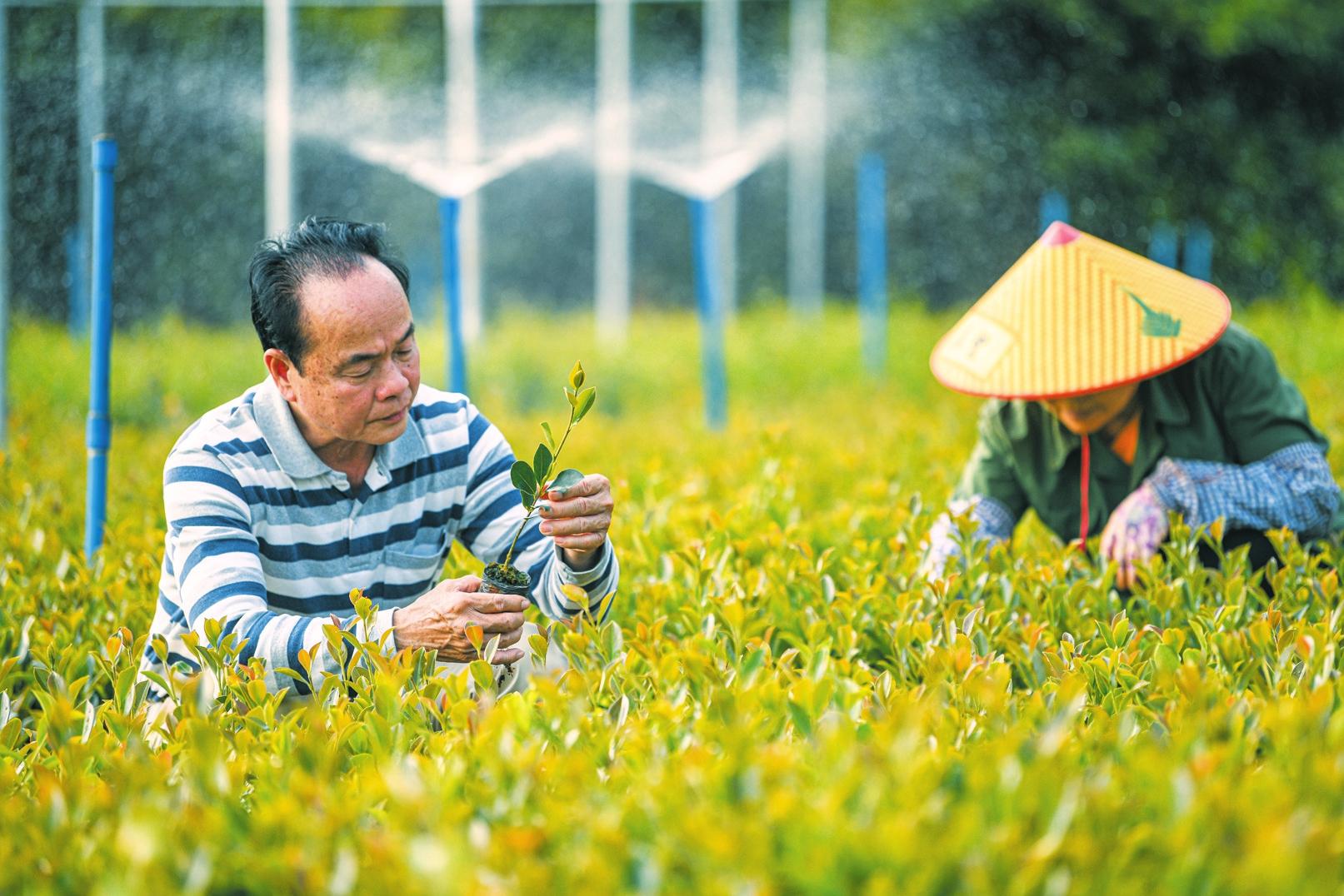 3月6日下午,趁着春日暖阳,记者来到位于海南省海口市秀英区东山镇的海口油茶良种示范林产业园,大片油茶苗木郁郁葱葱,工人忙着浇水、除草、减苗,精心管护苗木。“我们在家门口实现了就业。”说起现在的工作,工人梁红莲笑容满面。