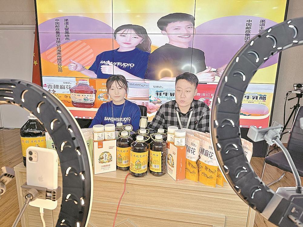 中国邮政集团有限公司海南州城区分公司总经理桑杰太说,今年主要推介加拉村的特色农产品和江西沟镇莫热仓合作社的农产品。为解决“三难”物流难、融资难、销售难的问题,公司每年以直播带货的方式推介特色产品和家乡的好山好水,助力乡村振兴。