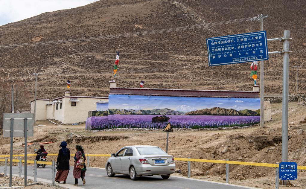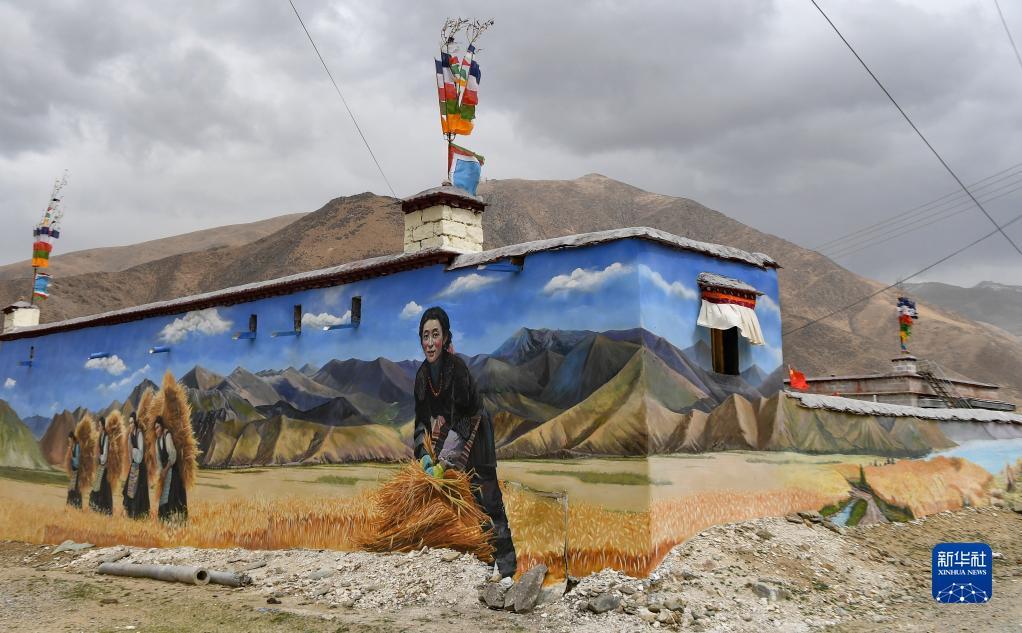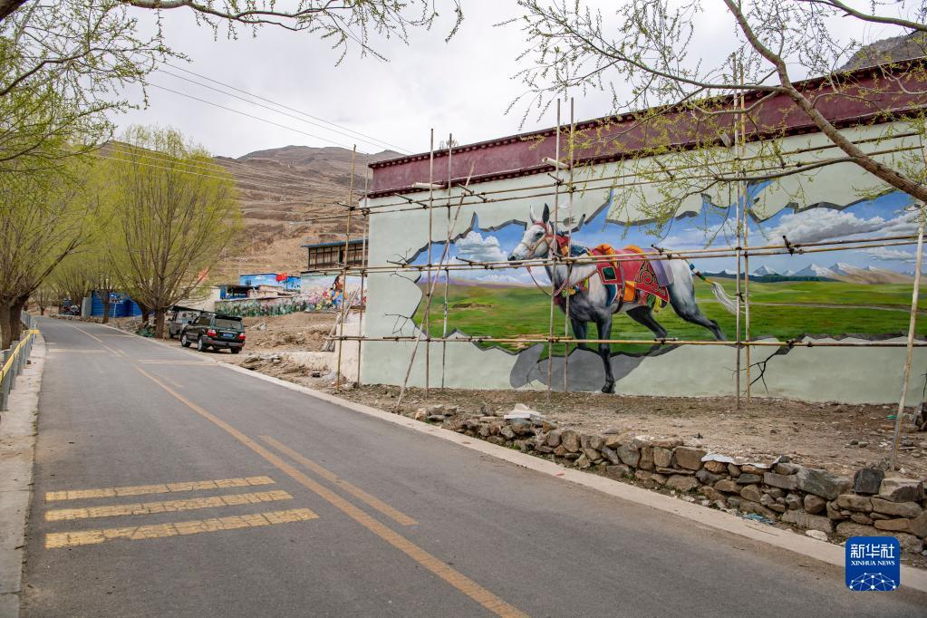 这是4月10日在拉萨市达孜区章多乡恰村拍摄的墙画。记者 晋美多吉 摄