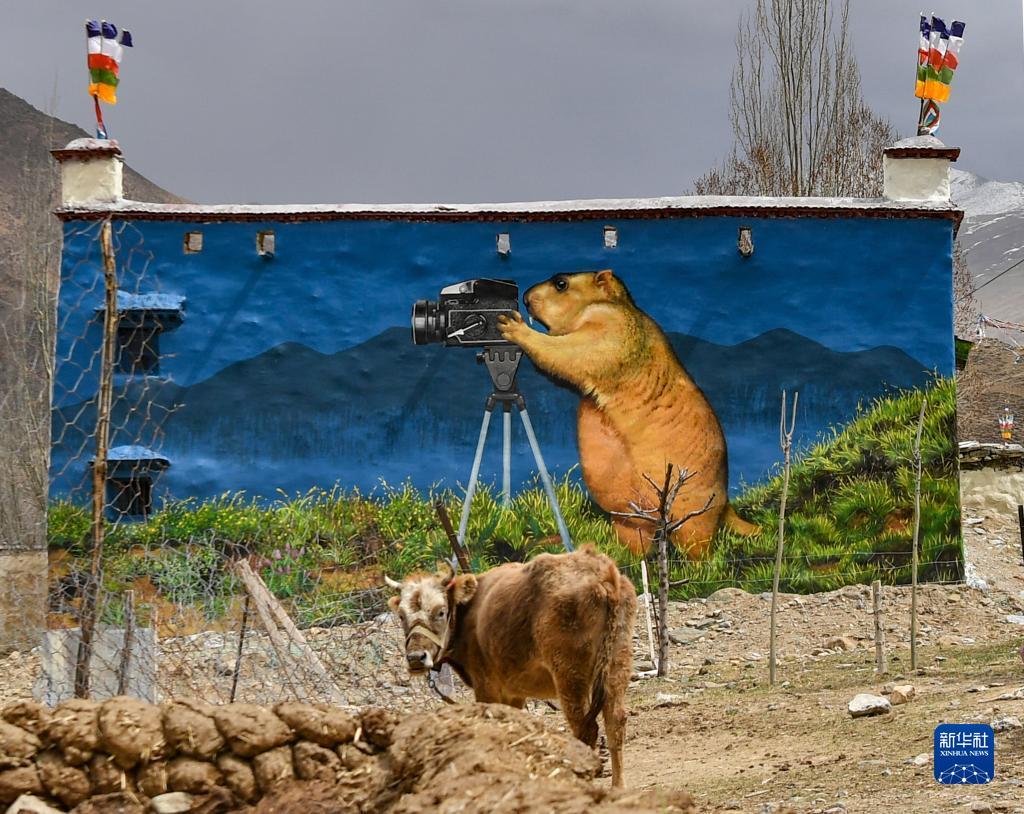 这是4月10日在拉萨市达孜区章多乡恰村拍摄的墙画。记者 孙非 摄