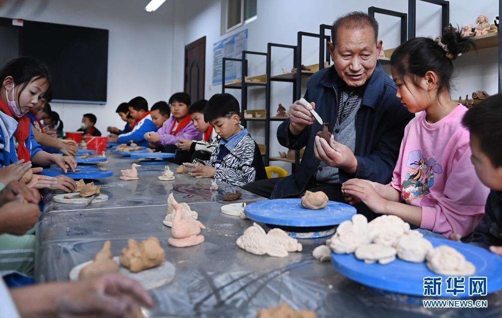 4月12日,陕西省西安市长安区七旬老人苗春生如约来到本村的周家庄小学,为陶艺泥塑社团的孩子们辅导泥塑技法,这是老人最乐意做的开心事,也是孩子们每周最开心的时刻。