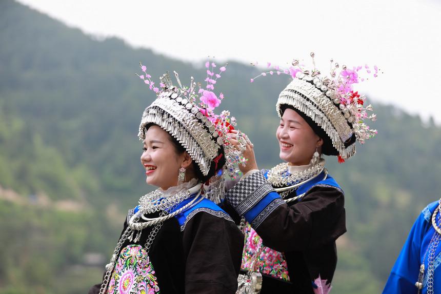4月22日,在新民村苗族同胞梳妆打扮,欢度高雍苗族“三月三”。