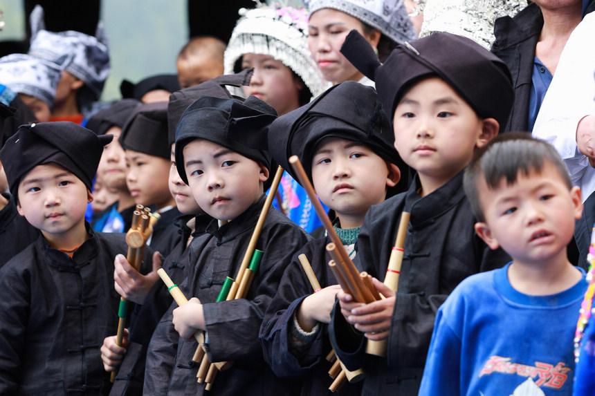 4月22日,新民村苗族小朋友参加高雍苗族“三月三”。