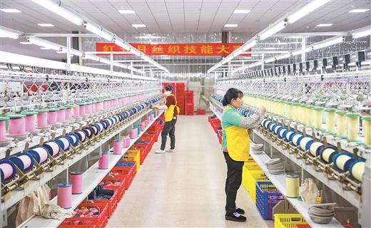 在三江口(忻城)茧丝绸产业园生产车间,高端真丝数码印花机高速运转,一条条花色精美的丝绸顷刻展现在大家眼前。这个被寄予厚望的产业园,占地1600亩,总投资50亿元,于2020年11月启动,分3期投资。项目建成后,预计年耗茧10万吨,年产生丝1.5万吨、真丝绸1.5亿米、丝绸服装7500万件套,将打造为全国最大的单体茧丝绸全产业链园区。目前,第一期已于2022年12月试产运行。主要建设蚕茧收烘仓库、缫丝厂、纺织绸厂、炼白厂、染色厂、印码厂、综合服务中心等,通过整体打包的方式建设专门的带农益农车间,预计年创利税2亿元以上,提供3000多个就业岗位。“广西蚕桑产业要向织绸印染、成品制造和外贸出口等环节延伸,形成长而完整的产业链。”广西蚕业技术推广站相关负责人告诉记者,广西茧丝加工集中度较高,全国乃至全球1万绪以上的9家大型缫丝厂均在自治区。全区现有茧丝加工企业93家,自动缫丝机生产规模40万绪,占全国总产能的40%。2022年全区生丝产量1.6万吨,同比增长10.78%,连续13年保持全国第一。2022年,全区坯绸产量1982.37万米,同比增长6.17%,广西同益国丝发展有限公司等企业引进数字化剑杆织机、数码印花机等先进茧丝精深加工设备,布局国内领先的优质丝绸面料生产;蚕桑“农工贸一体”“一二三产融合”的发展格局持续构建,“桑—蚕—茧—丝—绸”产业链条不断补齐,集群化发展潜力巨大。