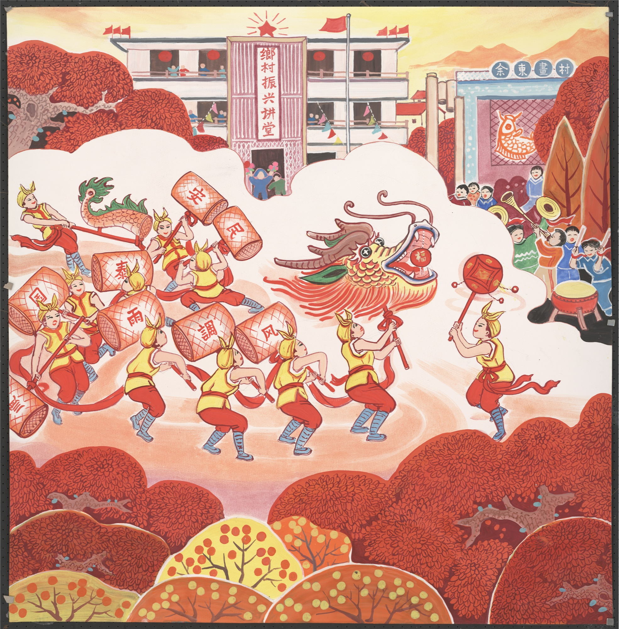 农民画家郑根良创作的《余东舞龙》农民画(余东村供图)