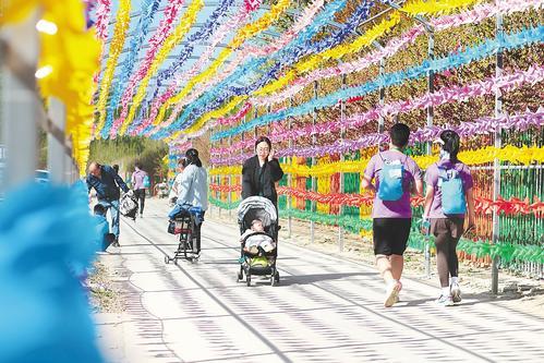 日前,游客在香河县蒋辛屯镇北李庄村水岸潮白景区内散步游玩。 通讯员 韩博阳 摄