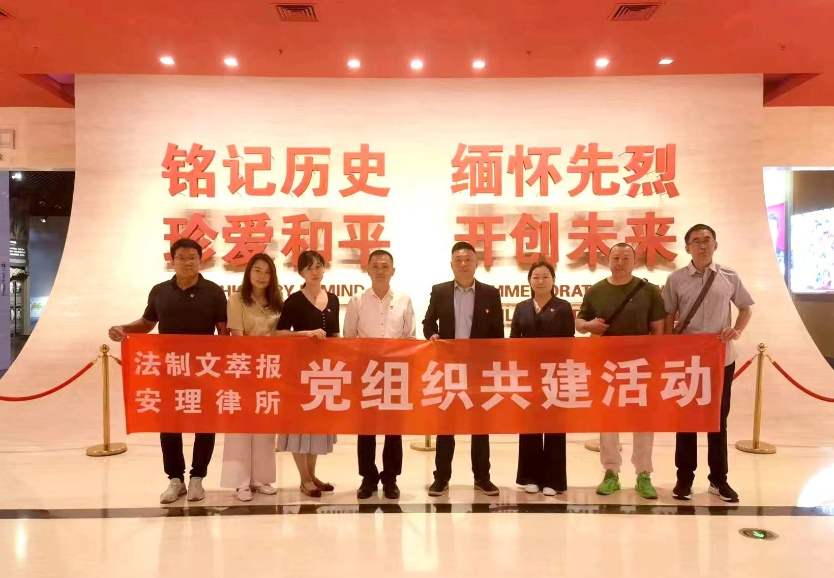 为深入开展学习贯彻习近平新时代中国特色社会主义思想主题教育,引导党员干部进一步增强党性观念,激发党员干部的爱国情怀,筑牢党员干部的理想信念根基,5月24日,法制文萃报与北京市安理律师事务所联合开展“铭记历史,开创未来”主题党日活动,组织党员干部参观中国人民抗日战争纪念馆、卢沟桥,缅怀革命先烈,践行使命担当,用抗战精神、红色基因、廉政文化等加强党员党性教育。
