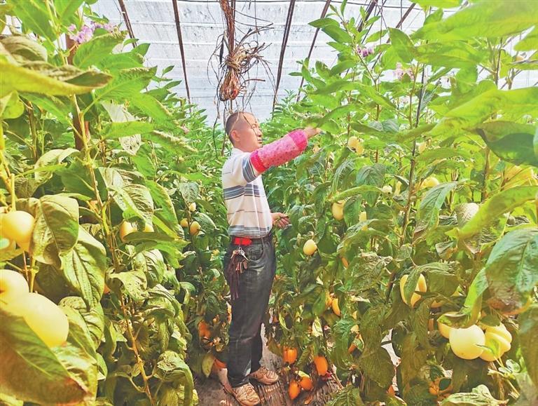 在水川镇大坪村现代农业科技示范园区内,游客纷纷走进农业采摘大棚,采摘高甜爆汁的草莓和圆润硕大的人参果。