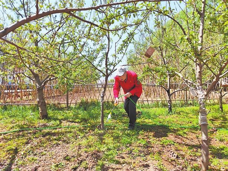 村民李凤山在自家果园劳作。记者 于晓明 摄