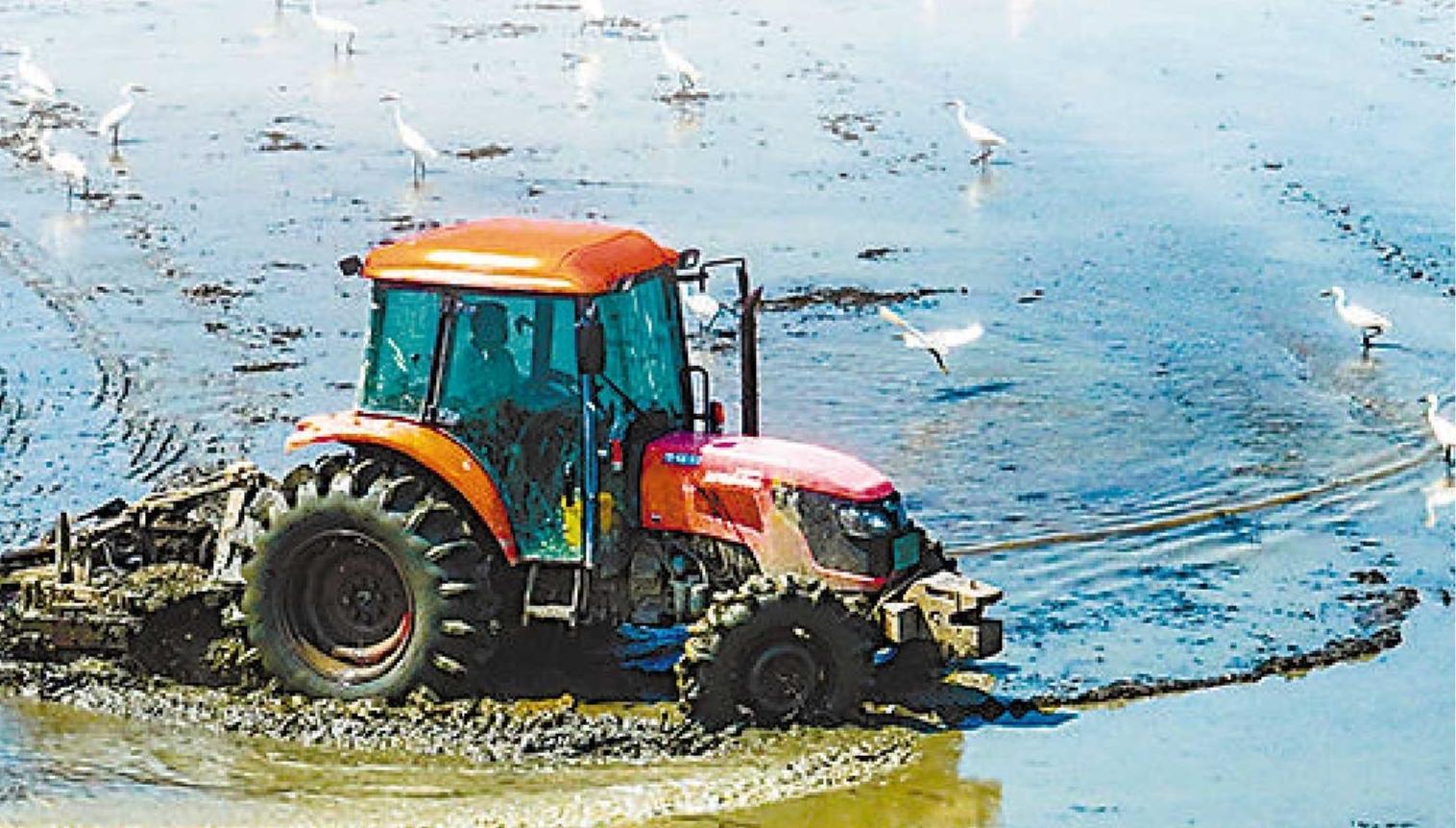 日前,芜湖市繁昌区平铺镇境内农田里,农户进行翻耕作业 通讯员 鲁君元摄