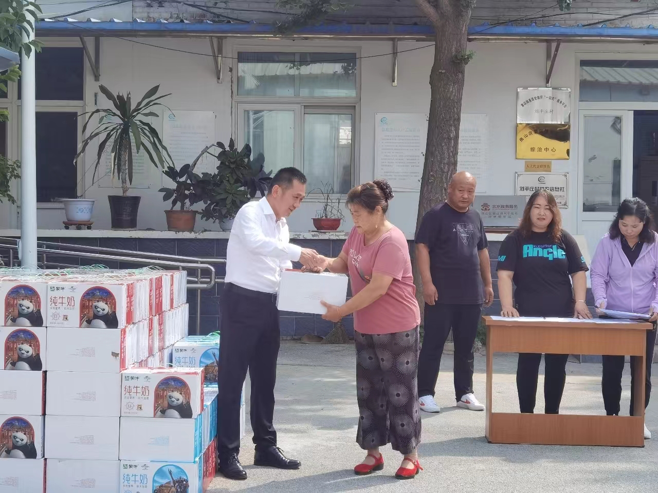 在前不久北京遭遇的特大暴雨灾害中,房山区共有11个乡镇遭遇断水、断电、断路、断网的情况。300多个村庄、社区受灾,造成了较大的经济损失,严重影响了民众的生产生活。刘平庄村是房山区窦店镇南端海拔最低的村庄,地处低洼地带,遭受了雨水侵袭和洪水倒灌双重灾害,村民房屋被浸泡,农田被淹导致绝收,减产严重。此次安理党委利用党建公益专项费用“安理小基金”为村里60岁以上老人捐赠了300箱蒙牛纯牛奶,以实际行动践行社会责任。